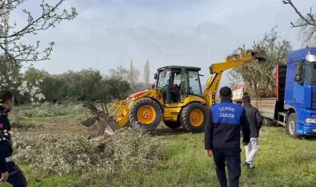 Bursa'nın İznik ilçesinde kaçak olarak devlet arazisine yapılan bağ ve bahçeler, jandarma ve zabıta ekiplerinin geniş güvenlik önlemleri altında iş makineleri tarafından kaldırıldı.