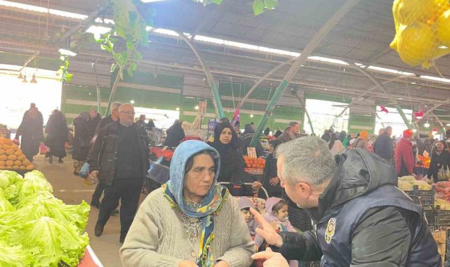 İznik İlçe Emniyet Müdürlüğü Toplum Destekli Polislik Büro Amirliği ekipleri, pazar yerinde vatandaşları dolandırıcılık olaylarına karşı bilgilendirerek broşür dağıttı.