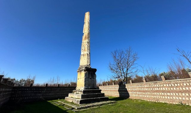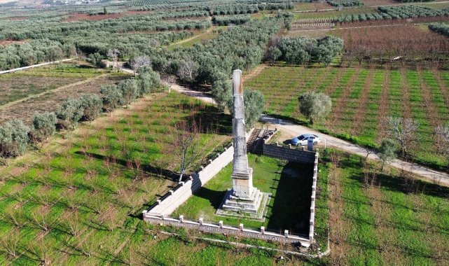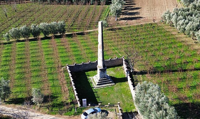 Bursa'nın İznik ilçesinde bulunan Roma dönemine ait mezar anıtı olan 2 bin yıllık dikilitaş, şeftali bahçelerinin ortasındaki ihtişamıyla turistlerin ilgi odağı haline geldi.