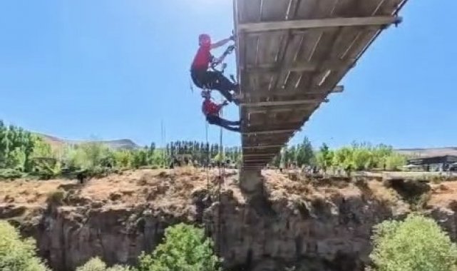 Van İl Jandarma Komutanlığına bağlı JAK timi, 29 Ekim Cumhuriyet Bayramı dolayısıyla Muradiye Şelalesi Köprüsü'nde Türk bayrağı açtı.