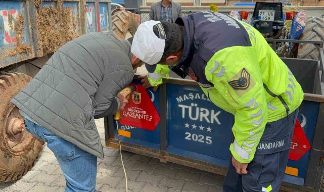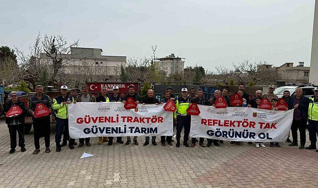 Gaziantep İl Jandarma Komutanlığı Trafik Jandarması ekipleri, traktörlerin kara yollarında seyri sırasında görünürlüğü artırmak ve güvenli trafik akışını sağlamak amacıyla çalışmalarına devam ediyor. Gaziantep Valiliği, Büyükşehir Belediyesi ve İl Jandarma Komutanlığı iş birliğinde yürütülen "Reflektör Tak, Görünür Ol" projesi kapsamında Oğuzeli ilçesinde 300 traktör sürücüsüne "sarı ikaz lambası kullanma, traktör römorklarında bulunması zorunlu olan reflektör ve rops demiri kullanımının trafik kazalarındaki önemi" konularında trafik bilgilendirme semineri verildi. Bilgilendirme faaliyeti sonrası reflektör bulunmayan traktör römorklarına 600 adet reflektör dağıtıldı.