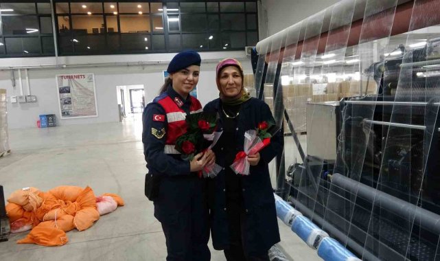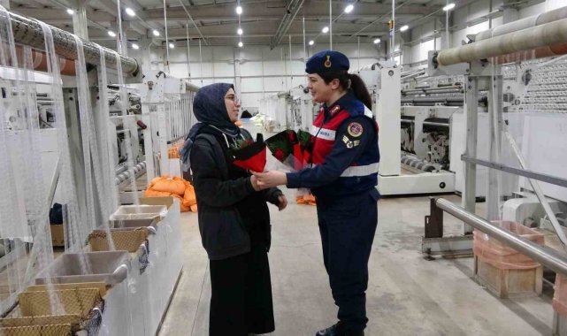 Jandarma 8 Mart Kadınlar Günü dolayısıyla fabrika işçisi kadınları unutmadı