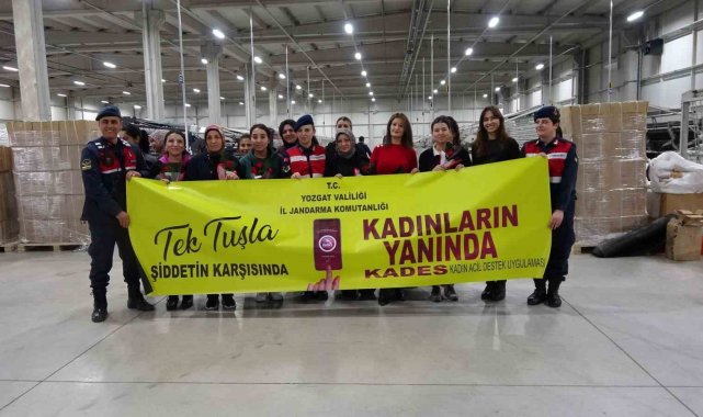 Bir fabrikadaki kadın çalışanları ziyaret eden Jandarma ekipleri, kadın işçilere gül hediye etti. Jandarma personeli, kadınların 8 Mart Kadınlar Gününü kutlarken aynı zamanda KADES uygulamasını tanıtarak ihtiyaç duymaları halinde uygulamadan yardım talep edebileceklerini belirtti.
