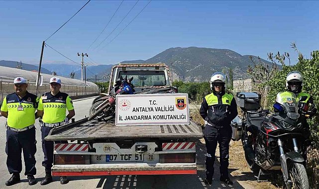 Antalya İl Jandarma Komutanlığı Trafik Şube Müdürlüğü, Finike İlçe Jandarma Komutanlığı ve Kumluca İlçe Jandarma Komutanlığı ekiplerince huzur güven uygulaması kapsamında yapılan denetlemelerde hırsızlık malı olduğu tespit edilen 1 motosiklet, şase numarası kazınmış 7 motosiklet, 8 adet tescilsiz motosiklet, 1 hacizli yakalamalı araç ve 7 abartı egzozlu araç olmak üzere toplam 98 motosiklet trafikten men edildi. Denetimler kapsamında sürücülere 278 adet cezai işlem uygulandı.