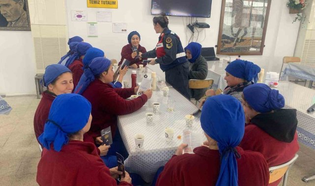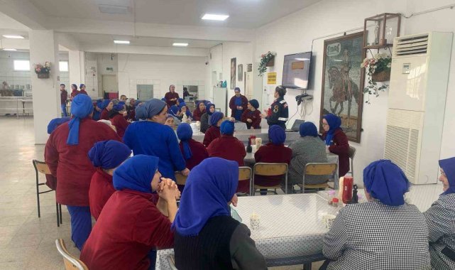 Aydın'ın Söke ilçesinde Söke İlçe Jandarma Komutanlığı Aile İçi Şiddetle Mücadele ve Çocuk Şube Amirliği tarafından bir fabrikada çalışan kadınlar KADES uygulaması ve erken yaşta zorla evlilikler konularında bilgilendirildi.