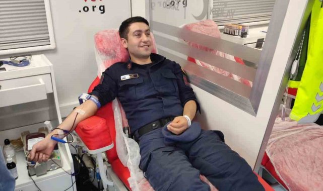 Yozgat'ta kan bağışının önemini vurgulamak amacıyla Jandarma ekipleri kan bağışı yaptı.
