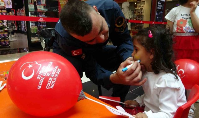 İl Jandarma Komutanlığı ekipleri, 23 Nisan Ulusal Egemenlik ve Çocuk Bayramı etkinlikleri kapsamında bir alışveriş merkezinde program düzenledi. Jandarma ekiplerince düzenlenen etkinlik kapsamında çocukların yüzlerine boyamalar yapılarak aynı zamanda dama, santraç gibi oyunlar oynandı. Çocukların doyasıya eğlendiği etkinlikte çocuklar jandarma motor ve araçlarına da bindirildi.