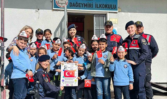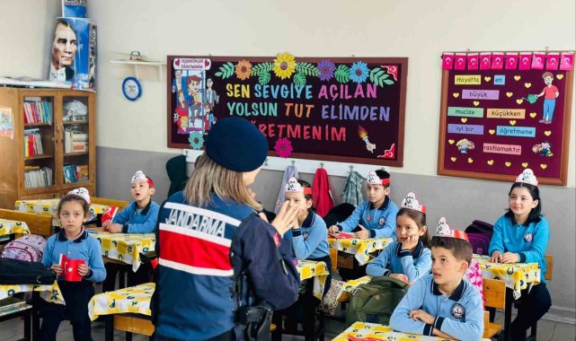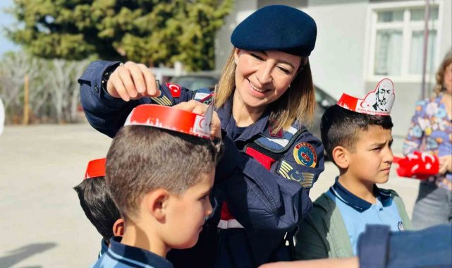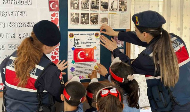Aydın'da jandarma ekipleri ilkokul öğrencileri ile bir araya gelerek İstiklal Marşı'nın kabulünün 104. yılı kutlandı.