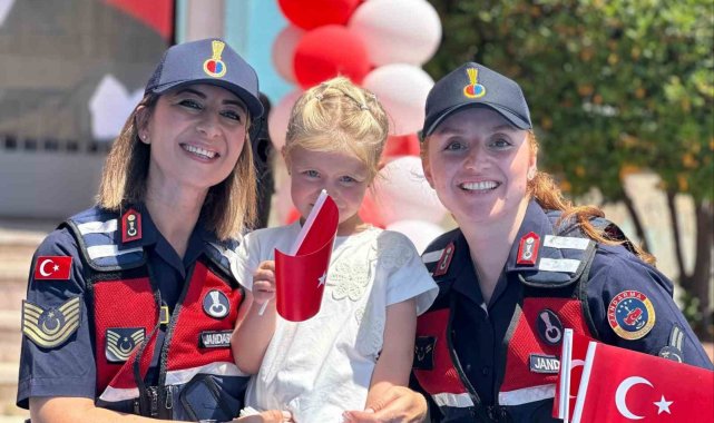 Aydın'ın Nazilli ilçesinde düzenlenen karne törenine katılan jandarma ekipleri, çocukların karne sevincine ortak oldu.
