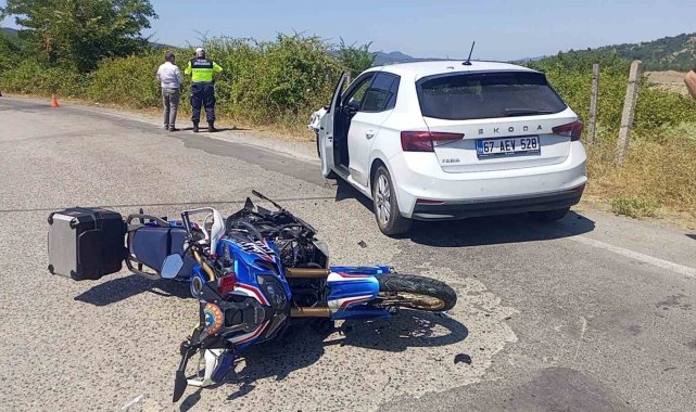 Zonguldak'ın Çaycuma ilçesinde jandarmaya ait motosikletle otomobilin çarpışması sonucu meydana gelen kaza maddi hasarla atlatıldı.
