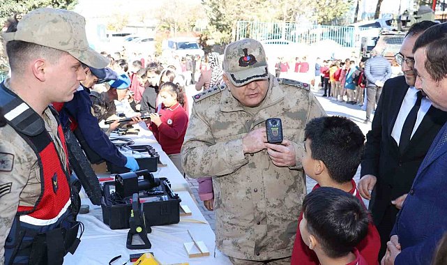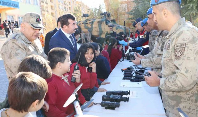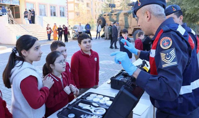 Kilis'te jandarma ekipleri, öğrencilerle bir araya gelerek yerli ve milli savunma sanayiinde kullanılan araç ve gereçleri tanıttı, yerli üretimin önemine dikkat çekti.