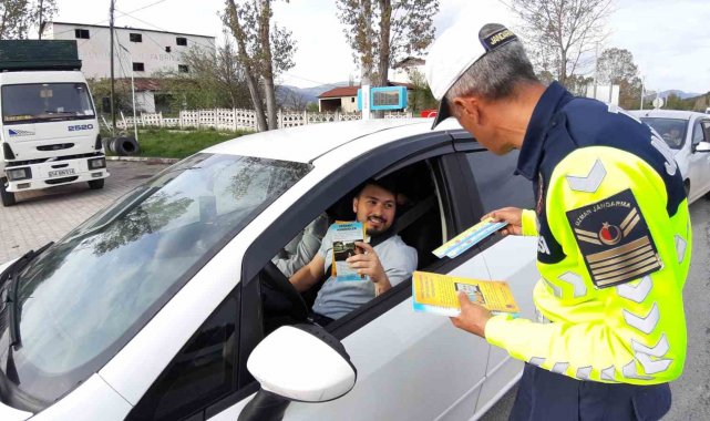 Bolu İl Jandarma Komutanlığı'na bağlı trafik timleri, Bolu-Mudurnu kara yolunda, Trafik Haftası dolayısıyla vatandaşları bilgilendirmek için çalışma gerçekleştirdi. Trafik güvenliğini sağlamak ve kural ihlallerini önlemek amacıyla yapılan uygulamalarda, yolun belirli noktalarında konuşlanan ekipler, sürücüleri tek tek durdurarak broşürüler dağıtıp, bilgilendirme yaptı. Trafik ekipleri, herhangi bir kaza durumunda emniyet kemeri kullanımının ağır yaralanma ve can kaybı yaşanması risklerini düşürdüğü ifade edildi.