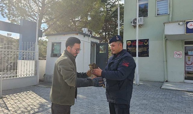 Uşak Jandarma ekiplerince yol kenarında bulunan yaralı şahin Doğa Koruma ve Milli Parklar Şube Müdürlüğü ekiplerine teslim edildi.