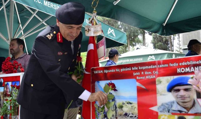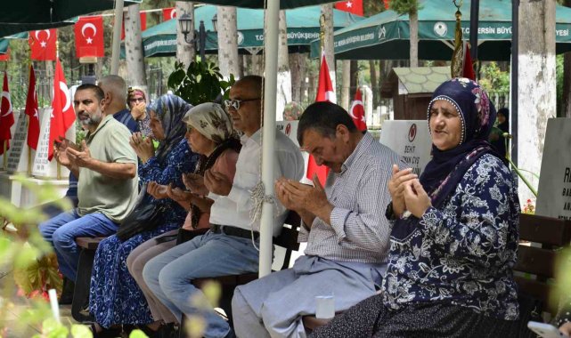 Toroslar ilçesi Akbelen Mahallesi'nde bulunan Mersin Şehir Mezarlığı'ndaki şehitlikte gerçekleştirilen törene, İl Jandarma Komutanı Tuğgeneral Ercan Atasoy'un yanı sıra şehit aileleri, gaziler ve kent protokolü katıldı. Törende Kur'an-ı Kerim okunarak şehitler için dualar edildi. Ardından protokol üyeleri, şehit mezarlarına gül bıraktı. Ziyaret sırasında duygulu anlar yaşanırken, Tuğgeneral Atasoy, gaziler ve protokol üyeleri, şehit aileleriyle tek tek selamlaşarak başsağlığı dileklerini iletti.