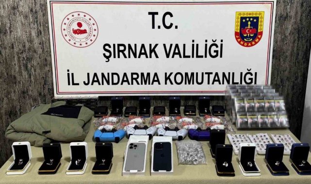 Şırnak İl Jandarma Komutanlığı Kaçakçılık ve Organize Suçlarla Mücadele Şube Müdürlüğü 6-12 Ocak tarihleri arasında 43 farklı ev, eklenti ve iş yerine kent merkezi ve ilçelerinde kaçakçılık ve asayiş operasyonları düzenledi. Operasyonlarda piyasa değeri 3 milyon 950 bin Türk Lirası olduğu tespit edilen 1 adet av tüfeği, 10 gram kubar esrar, 5 gram metamfetamin, 1 adet dedektör, 18 adet muhtelif kazı malzemesi, 17 bin 441 paket gümrük kaçağı sigara, 689 adet elektronik sigara, 22 kilo çay, 16 litre alkollü içecek, 39 adet cep telefonu, 587 adet cep telefonu aksesuarı, 17 adet ayakkabı, 255 adet muhtelif inşaat malzemesi, bin 328 adet muhtelif süs eşyası, 105 adet muhtelif gümrük kaçağı malzeme ele geçirildi.