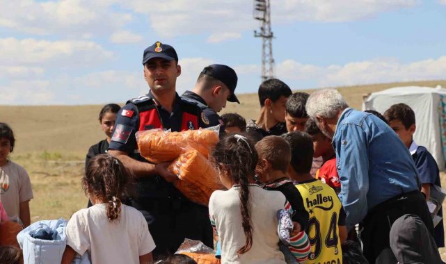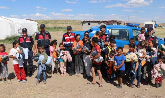 Yozgat'ın Yerköy ilçesine bağlı Sekili mevkiinde, mevsimlik tarım işçilerinin beraberindeki çocukları ziyaret eden Jandarma personeli oyuncak, kıyafet, ayakkabı ve battaniye dağıttı. Etkinlikte çocuklarla sohbet eden ekip, mutlu anlara ortak oldu.