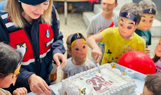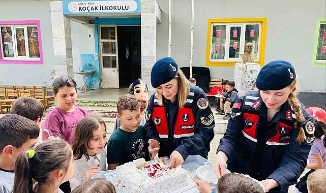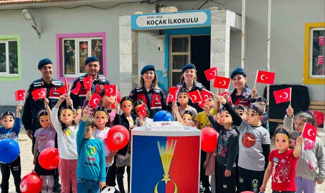 Aydın'ın Köşk ilçesinde jandarma ekipleri, çocuklara '23 Nisan pastası' sürprizi yaparak günlerini kutladı.