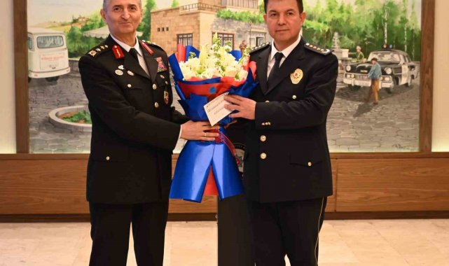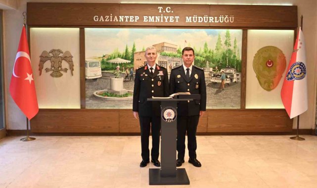 Gaziantep İl Jandarma Komutanı Tümgeneral Halil Şen ve beraberindeki heyet, İl Emniyet Müdürü Celal Özcan'ı ziyaret ederek Türk Polis Teşkilatı'nın 181'inci kuruluş yıl dönümünü kutladı.