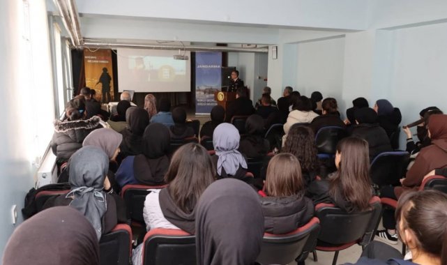 Jandarma personeli, Erzurum'un Oltu ilçesinde lise öğrencilerine kariyer fırsatları ve meslek hayatına dair bilgilendirme yaptı.