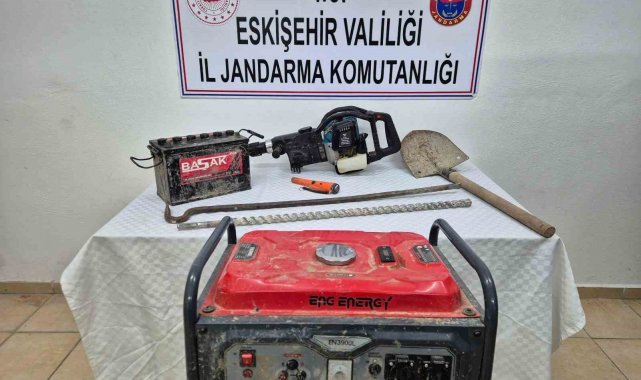 Eskişehir İl Jandarma Komutanlığına bağlı birimler tarafından yapılan çalışmalar neticesinde Seyitgazi ilçesinde şüphelilerin define bulmak amacıyla izinsiz kazı yapacağı öğrenildi. Anadolu Mirası Operasyonları kapsamında 2 şüpheli şahıs kaçak kazı yaparken suçüstü yakalandı. Kazı alanında yapılan incelemelerde şüphelilere ait olduğu tespit edilen 1adet jeneratör, 1 adet akü, 1 adet hilti, 1 adet pointer, 7 adet el yapımı patlayıcı madde ve 3 adet muhtelif kazı malzemesi ele geçirildi.
