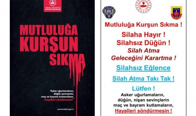 Aydın'da jandarma ekipleri, kutlamalarda havaya açılan ateş sonucu istenmeyen durumların yaşanmaması adına gerçekleştirdiği denetimlerde vatandaşları da 'Mutluluğa kurşun sıkma' mottosuyla bilgilendirdi.