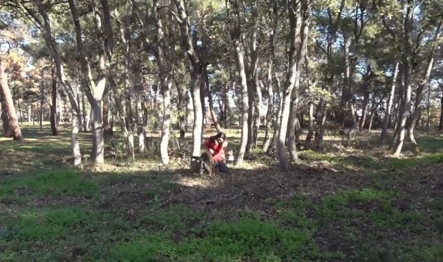 Tekirdağ İl Jandarma Komutanlığı ekipleri, iz takip köpeği 'Mercek'in katılımıyla Atatürk Orman Çiftliği'nde kayıp arama tatbikatı gerçekleştirdi.