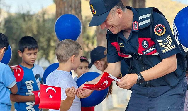 Jandarmadan öğrencilere Türk bayrağı