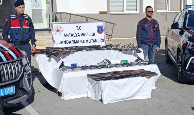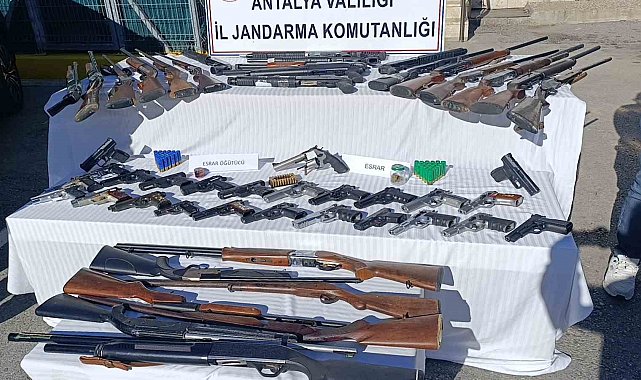 Antalya'nın Manavgat ilçesinde ilçe Jandarma Komutanlığına bağlı ekipler tarafından silah kaçakçılığıyla mücadele kapsamında gerçekleştirilen operasyonda çok sayıda tabanca, tüfek ve bu silahlara ait fişek ele geçirildi.