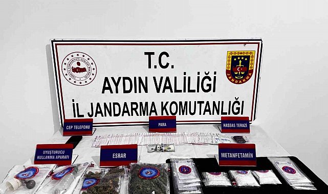 Aydın İl Jandarma Komutanlığı KOM Şube Müdürlüğü, İstihbarat Şube Müdürlüğü ve Nazilli İlçe Jandarma Komutanlığınca yönelik koordineli çalışma gerçekleştirildi. Edinilen bilgiye göre ekipler, M.A. isimli şüphelinin Nazilli ilçesi Aydoğdu Mahallesi'ndeki aderesinde uyuşturucu satışı yaptığını tespit etti. Harekete geçen jandarma ekipleri, M.A.'nın adresine baskın düzenledi. Yapılan aramalarda 9 adet paket halinde toplam 498 gram metamfetamin maddesi, 356 gram esrar maddesi, 25 gram kenevir tohumu, 2 adet uyuşturucu kullanma aparatı, 1 adet hassas terazi ve suçtan elde edildiği değerlendirilen 40 bin TL ile 100 Dolar nakit para ele geçirildi. Yakalanarak gözaltına alınan şüpheli hakkında başlatılan adli işlemler sürüyor.