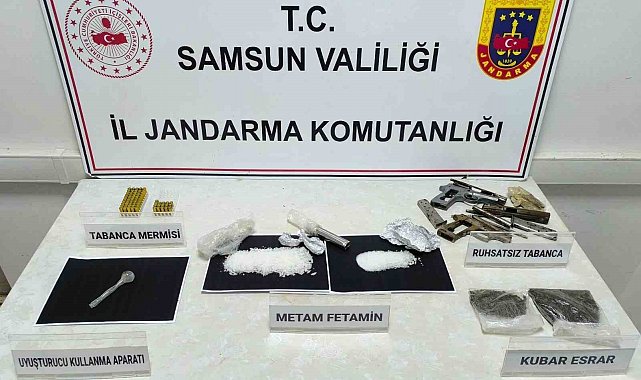 Edinilen bilgiye göre, Samsun'un Çarşamba ilçesinde jandarma ekiplerinin uyuşturucu ticaretinin önlenmesine yönelik yürüttüğü çalışma kapsamında bir şahsın evine operasyon düzenlendi. Yapılan aramada 235 gram metamfetamin, 126 gram kubar esrar, 2 adet ruhsatsız tabanca ve 1 adet uyuşturucu kullanma aparatı ele geçirildi.