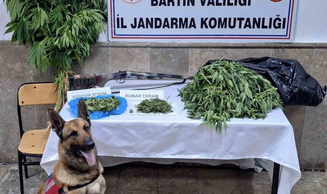 Bartın'da İl Jandarma Komutanlığı ekipleri tarafından 2 ayrı adrese operasyon düzenlendi. Cumhuriyet Başsavcılığı talimatıyla gerçekleştirilen operasyonda 44 kök kenevir bitkisi ve 6 kilogram kubar esrar ve 1 adet ruhsatsız av tüfeği ele geçiren ekipler, 2 kişiyi de gözaltına aldı.