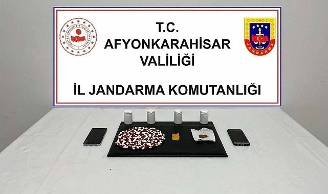 Afyonkarahisar'da jandarma tarafından bir adrese yapılan baskında uyuşturucu haplar ile 84 kullanımlık uyuşturucu emzirilmiş peçete ele geçirildi.