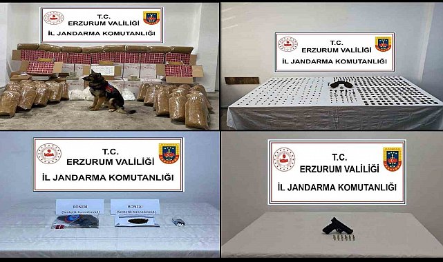 Erzurum İl Jandarma Komutanlığınca 01-31 Ocak 2025 tarihleri arasında kaçakçılık ve organize suçların önlenmesine yönelik sürdürülen çalışmalar kapsamında; 35 gram metamfetamin, 56 gram bonzai,10 gram bonzai hammaddesi,22 gram toz esrar, 4 gram eroin, 3 adet lyrıca,1 adet ruhsatsız tabanca, 2 adet tabanca şarjörü ve 21 adet fişek, 194 adet tarihi sikke, 272 adet eski eser niteliğinde süs eşyası, 3 adet dedektör, 235 kg kaçak tütün, 18 bin 192 adet sigara kağıdı, 44 bin 950 adet sigara filtresi, 456 bin 200 adet makaron, bin 376 paket sigara ele geçirildi.