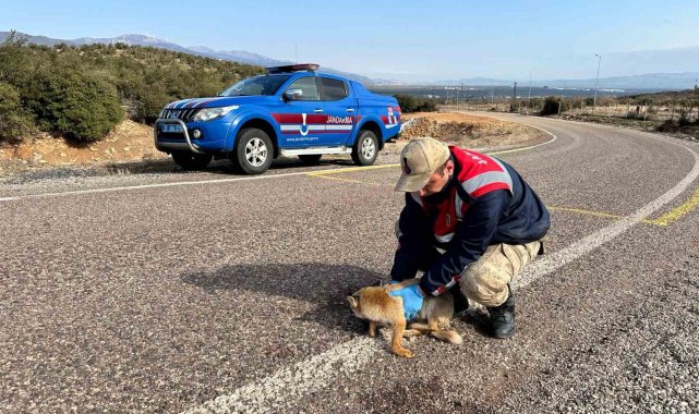 Gaziantep'te jandarma ekipleri, devriye sırasında yorgun ve yaralı halde bulduğu tilkiyi Gaziantep Hayvanat Bahçesi Rehabilitasyon merkezi ekiplerine teslim etti.