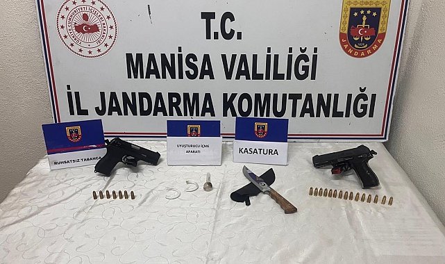 Akhisar İlçe Jandarma Komutanlığı JASAT ve Merkez Karakolu Asayiş ekipleri tarafından ruhsatsız silah taşıyanların yakalanmasına yönelik yapılan asayiş uygulamasında, 2 adet ruhsatsız tabanca, 22 adet tabanca fişeği, 1 adet bıçak ve 3 adet uyuşturucu içme aparatı ele geçirilerek el konuldu. Şüpheliler E.K. ve Y.T. hakkında Cumhuriyet Savcısından alınan talimatlar doğrultusunda adli işlemlere başlandığı açıklandı.