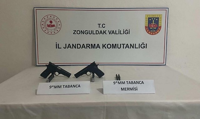 Zonguldak İl Jandarma Komutanlığı ekiplerince, Kdz.Ereğli ilçesinde adli makamlardan alınan arama kararına istinaden bir araç içerisinde yapılan aramada; 2 adet tabanca, 2 adet şarjör, 8 adet 9mm fişek ele geçirildi. Olayla ilgili Cumhuriyet Başsavcılığının talimatları doğrultusunda 1 şahıs ifadesi alınarak serbest bırakıldı. İki şahıs ise sevk edildiği adli makamlarca tutuklanarak cezaevine gönderildi.