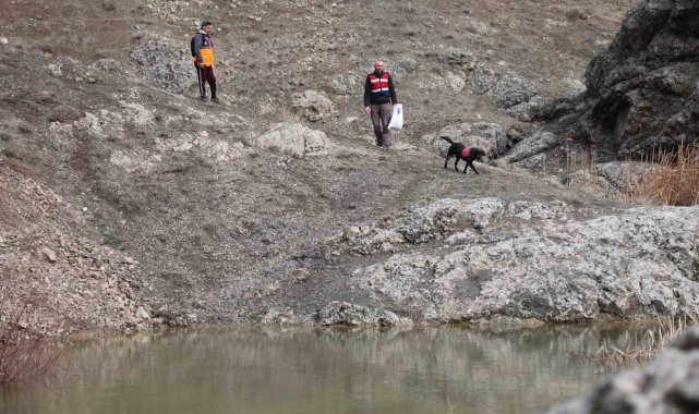 Elazığ'da 3 gündür kayıp olarak aranan 74 yaşındaki şahıs için iz takip köpeği 'Salkım', kıyafet ve ayakkabıdan alınan koku örneğiyle iz sürüyor.