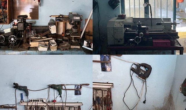 556 adet tabanca ve tüfek yayı, 4 adet tetik tertibatı, 3 adet pafta takımı, 1 adet tabanca şarjörü, 1 adet tabanca kabzası, 2 adet taşlama makinesi, 1 adet kaynak makinesi, 1 adet kıl testere, 1 adet diş açma aparatı, 2 adet kurşun dökme kaşığı, 22 adet 9 milimetre kurusıkı tabanca fişeği, 2 adet 7.65 milimetre tabanca fişeği, 1 adet tezgah, pense, boru anahtarı ve diğer Aletlerden oluşan anahtar takım seti ele geçirildi.