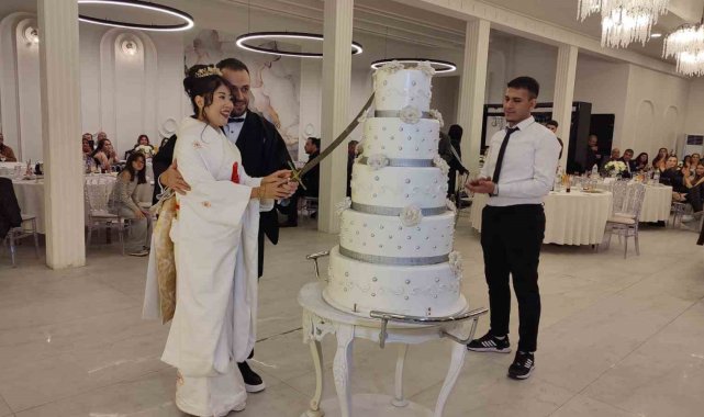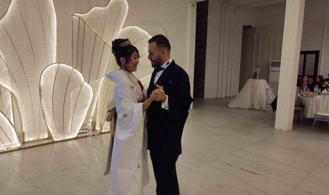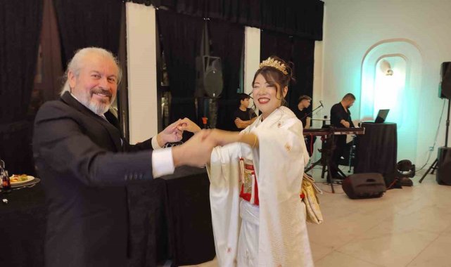 Japon gelin ve Türk damat konuklarını kimanoyla karşıladı