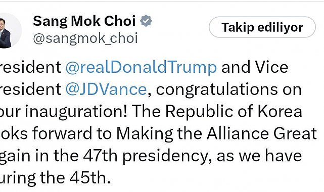 Güney Kore Geçici Devlet Başkanı Choi Sang-mok ise, Trump'ın yanı sıra ABD Başkan Yardımcısı James David Vance'e de tebriklerini iletti. Trump'ın "Amerika'yı yeniden harika yap" (MAGA) sloganına ve görevdeki ilk dönemine atıfta bulunan Choi, "Kore Cumhuriyeti, 45. başkanlık döneminde olduğu gibi 47. başkanlık döneminde de 'ittifakı yeniden harika yapmayı' dört gözle bekliyor" ifadelerini kullandı.