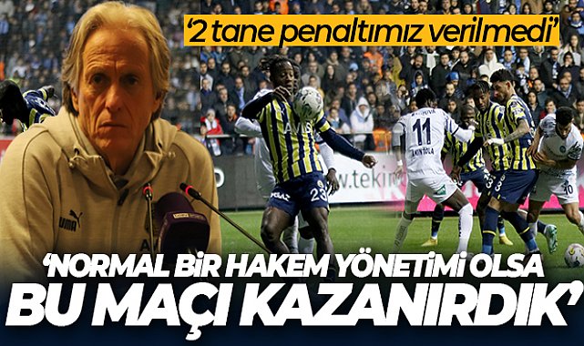 Fenerbahçe Teknik Direktörü Jorge Jesus, "Yıllardır bu işi yapıyorum buna benzer daha önce bir takımın saha içerisinde mağdur olduğu bir durumu görmemiştim" dedi. Jesus, Adana Demirspor maçının hakemine saygısız bir söylemde bulunmadığını aktardı.