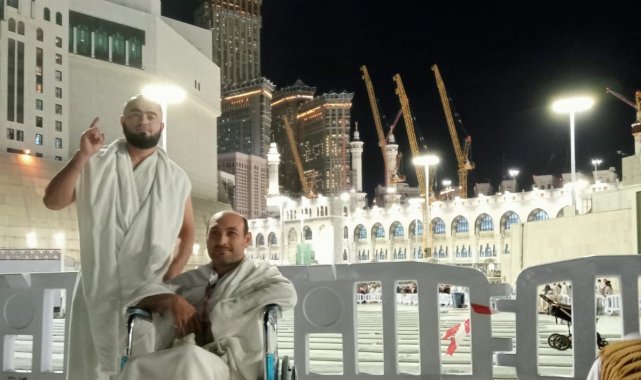 Manisa'nın Gördes ilçesinden 68 yaşındaki Annesi Zehra ve 71 yaşındaki Babası Nuri Çolak ile birlikte umre ibadeti için kutsal topraklara giden doğuştan yürüme engelli 39 yaşındaki Osman Çolak, en büyük hayali olan Kabe'yi görmenin mutluluğunu yaşıyor.
