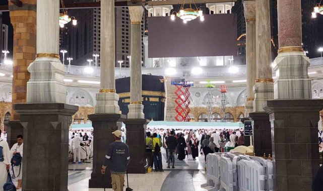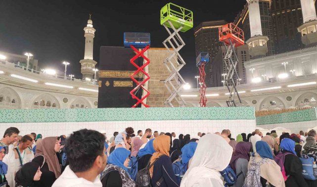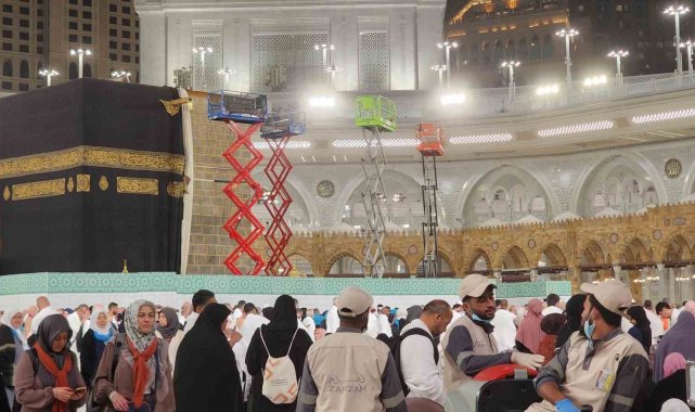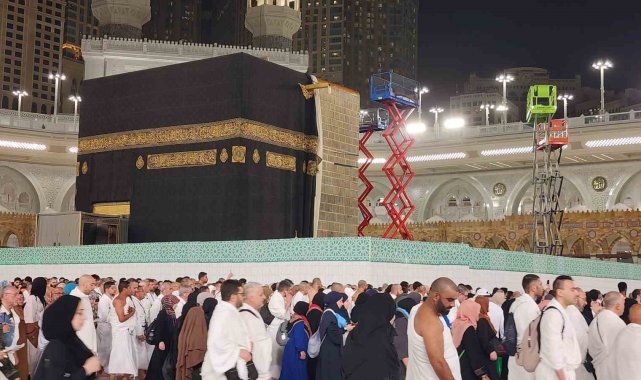 Erzurum'dan kutsal topraklara umre ziyareti yapan vatandaşlar, öğle namazı sonrası tavaf yaparken Kabe-i Muazzama'daki tamirata şahitlik etti. İbadetlerine devam eden Müslümanlar, hemen yanlarındaki 5 gündür devam eden çalışmayı heyecanla izledi.