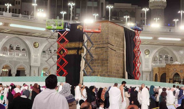 MEKKE (İHA) – Kabe'i Muazzamı'nın dış duvarları, ipek örtü kaldırılarak bakıma alındı. Uzun bir süreden sonra, Kabe'i Muazzama'nın dış duvarlarında kontroller yapıldı.