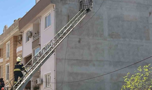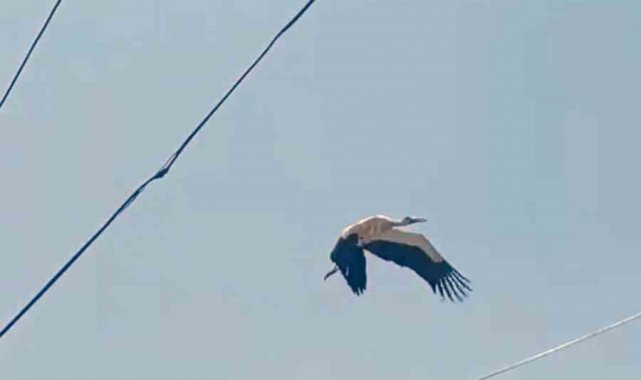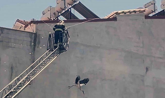 Apartmanın dairesinin en üst katında kabloyla dolanan leylek itfaiye ekiplerinin merdiven ile ulaşmasının ardından kurtarılarak tekrar doğal yaşam alanına bırakıldı.