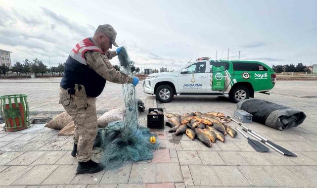 Edinilen bilgiye göre, Şanlıurfa İl Jandarma Komutanlığı Çevre, Doğa ve Hayvanları Koruma Timi (HAYDİ) ile Hilvan İlçe Jandarma Komutanlığı tarafından "Kaçak Balık Avcılığını Önlemek" için denetimler gerçekleştirildi. Hilvan ilçesine bağlı kırsal Faik Mahallesi bölgesindeki Fırat Nehri kıyılarında önleyici kolluk devriyesi esnasında kullanımı yasak olan misina balık ağı germek suretiyle avcılık yaptığı tespit edilen F.A. isimli şüpheli şahsın aracında arama yapıldı.