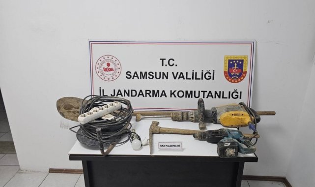 Samsun İl Jandarma Komutanlığı ekipleri, Havza ve Tekkeköy ilçelerinde define aramak için izinsiz kazı yapıldığı bilgisi üzerine hareketti. Jandarma ekipleri, Tekkeköy ilçesinde bir kişi ile Havza ilçesinde bir kişiyi arazide kazı yaparken kullandıkları malzemelerle birlikte yakalayarak gözaltına aldı. Olayla ilgili adli işlemlere başlandı.