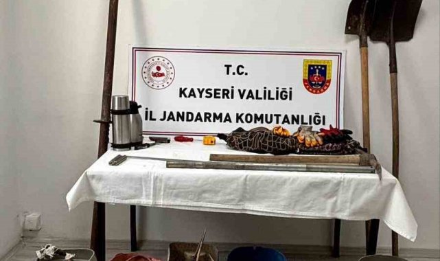 Edinilen bilgiye göre, Kayseri İl Jandarma Komutanlığı ekiplerince Kayapınar Mahallesi'nde icra edilen önleyici devriye esnasında, meşelik alanda üzeri çalılarla gizlenmiş kaçak kazı çukuru tespit etti. Durumun değerlendirilmesinin ardından İstihbarat Şube Müdürlüğü ile koordine kurularak bölgeye fotokapan yerleştirildi. Kaçak kazı faaliyetinin sürdüğüne alınan bilgiler istikametinde yapılan drone uçuşu ile kaçak kazı tespit edilirken; İstihbarat Şube Müdürlüğü ve Kaçakçılık ve Organize Suçlarla Mücadele Şube Müdürlüğü ekipleriyle birlikte bölgede gerçekleştirilen operasyonda, H.S., N.D., Ö.B. ve Y.Y. kazı yaptıkları esnada suçüstü yakalandı. Kazı alanında yapılan incelemelerde; en büyüğü 10 metre çapında ve 15 metre derinliğinde olmak üzere toplam 4 adet çukur tespit edildi. Olay yerinde şüpheliler tarafından kullanılan; 2 adet alan tarama çubuğu, 1 adet kazma, 2 adet kürek, 2 adet metal boru (kazıda kullanıldığı değerlendirilen), 6 adet bidon (toprak taşıma amaçlı), 4 çift eldiven, 21 adet muhtelif malzeme olmak üzere toplam 38 parça delil niteliğindeki malzeme muhafaza altına alındı.