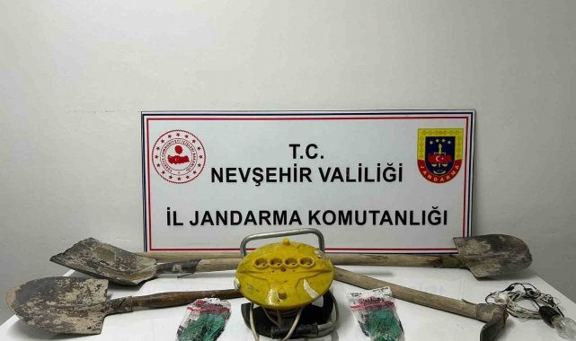 Edinilen bilgiye göre Nevşehir İl Jandarma Komutanlığı ekipleri tarafından, 'Anadolu Mirası Operasyonları' kapsamında yürütülen çalışmalar çerçevesinde jandarma ekipleri Merkeze bağlı Özyayla köyünde bulunan bir ikamette izinsiz kazı yapıldığı ihbarını aldı. Nevşehir Cumhuriyet Başsavcılığı'nın talimatıyla O.B.'nin ikametine operasyon yapıldı. Yapılan operasyonda O.B.'ye ait taşınmaz içerisinde O.B., C.U., C.B., E.Ç. ve M.Ç. isimli şahısların izinsiz kazı yaptıkları tespit edilerek suçüstü yakalandı. Olay yerinde yapılan incelemede, yaklaşık 3 metre derinliğinde ve 1,5 metre genişliğinde kazı yapıldığı belirlendi. Yapılan aramalarda, 2863 sayılı Kültür ve Tabiat Varlıklarını Koruma Kanunu kapsamında değerlendirilen 3 adet kürek, 2 adet çapa, 1 adet kazma ve 1 adet teneke olmak üzere toplam 7 adet kazı malzemesi ile 2 adet aydınlatma malzemesi ele geçirildi.