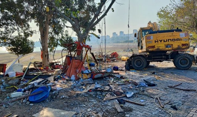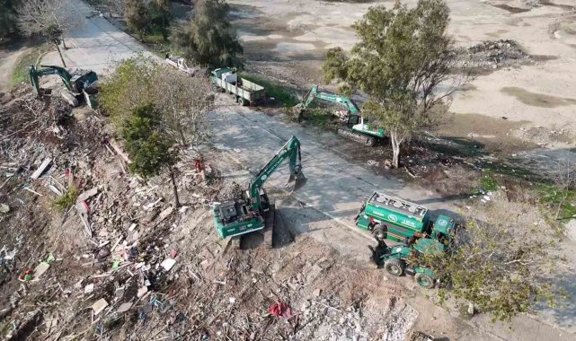 Adana'da Amerikan Adası olarak bilinen yerdeki kaçak yapıların yıkım işlemleri ikinci gününde de devam ederken, bir taraftan da molozlar temizlenmeye başlandı.